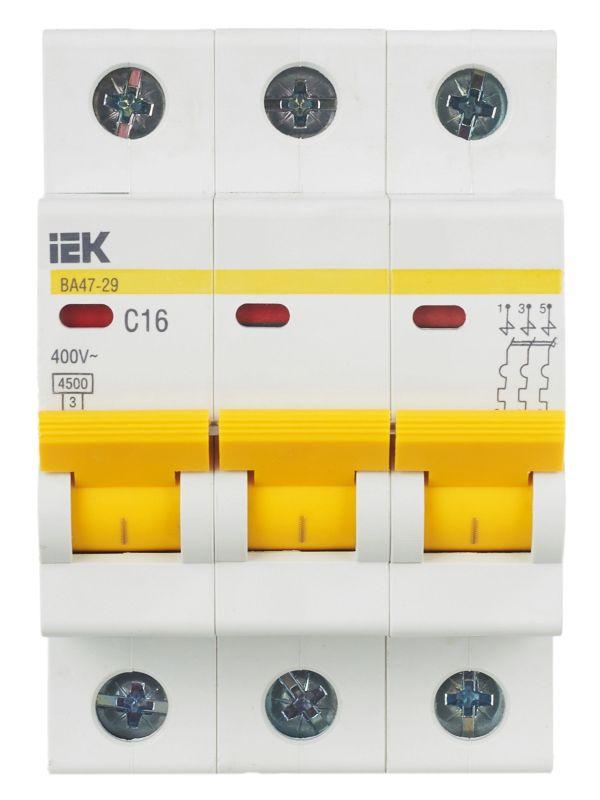 - Выключатель автоматический модульный 3п C 16А 4.5кА ВА47-29 IEK MVA20-3-016-C