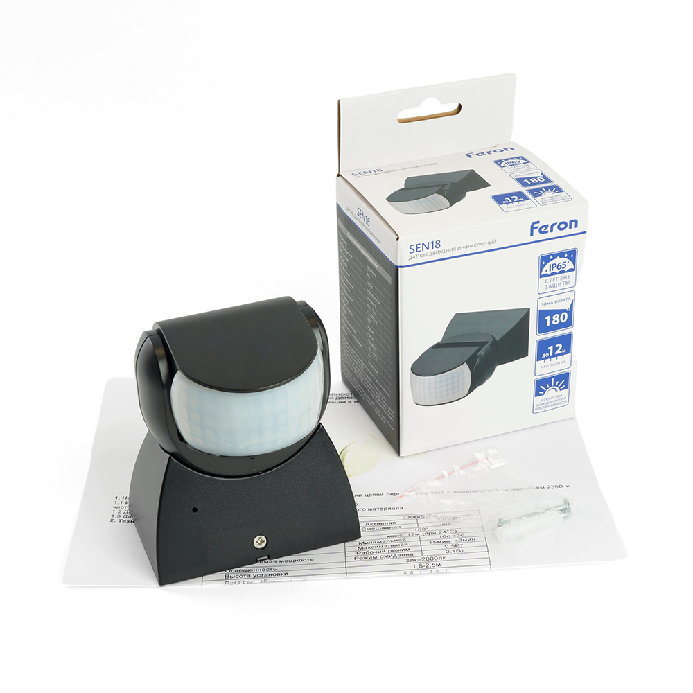 - Датчик движения 1200W 12m 180° чёрный, SEN18