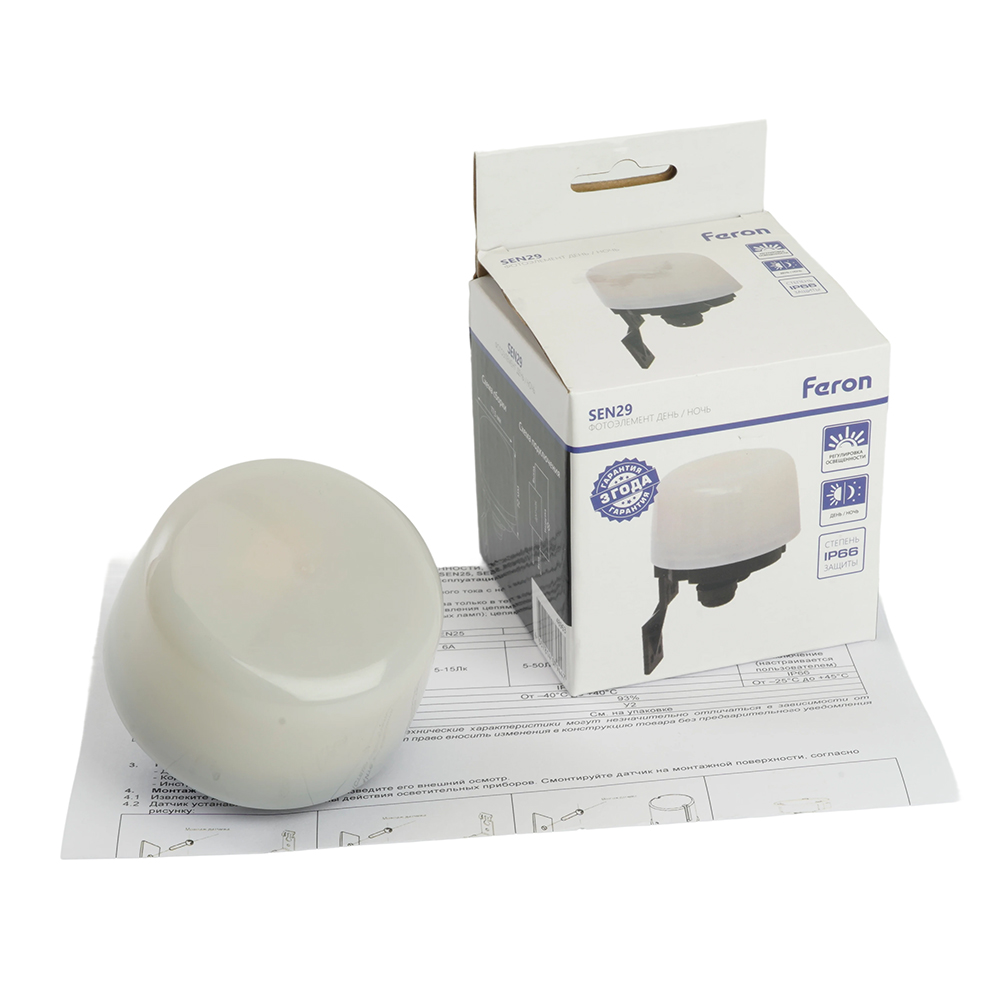 - Датчик освещенности-фотоэлемент 2200ВТ белый, SEN29 IP66