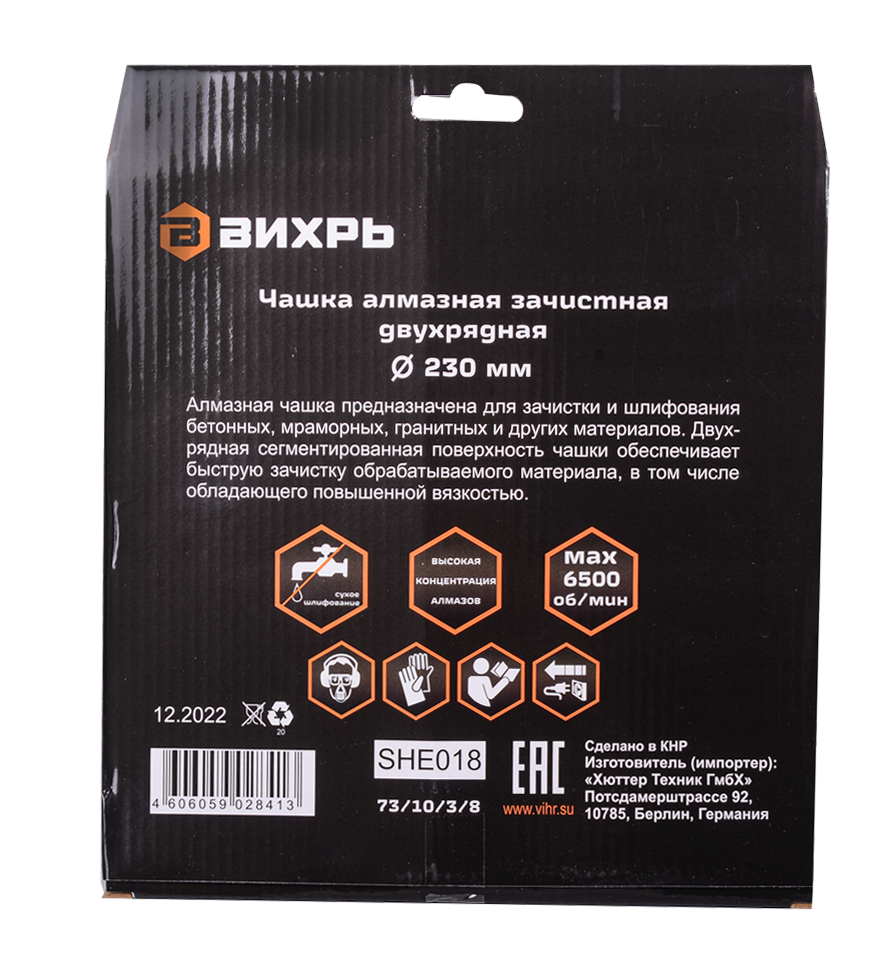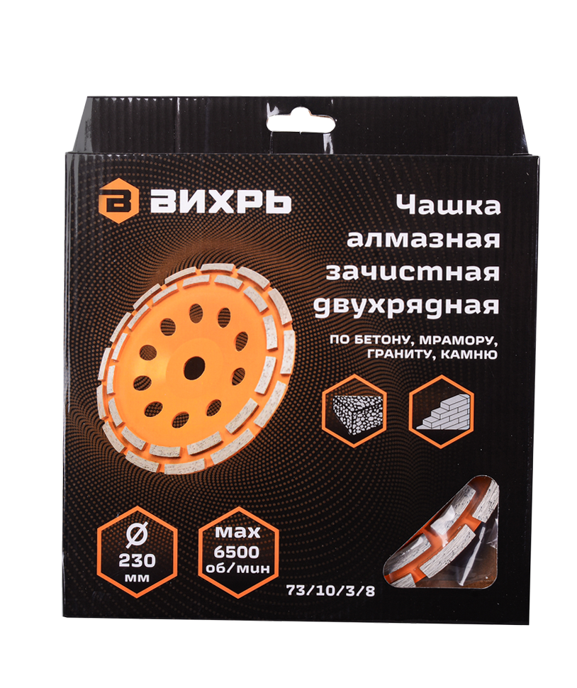 - Чашка алмазная зачистная, 230 мм, двухрядная Вихрь