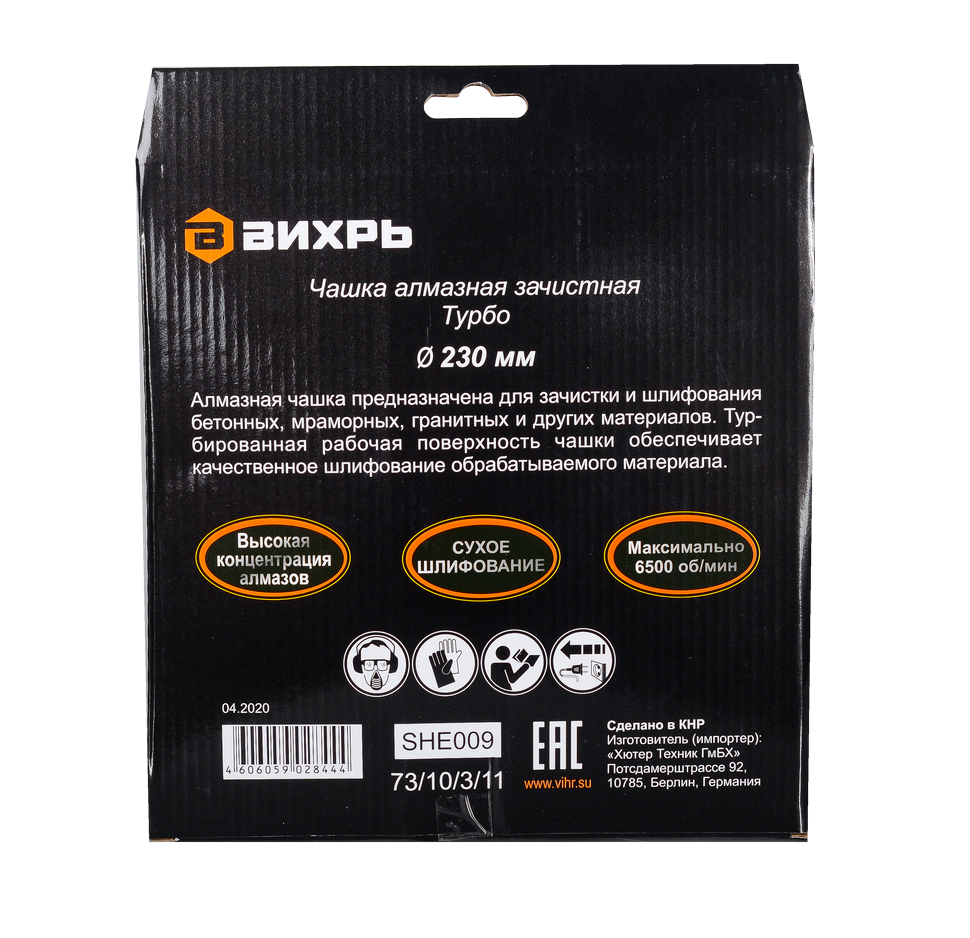 - Чашка алмазная зачистная, 230 мм, Турбо Вихрь