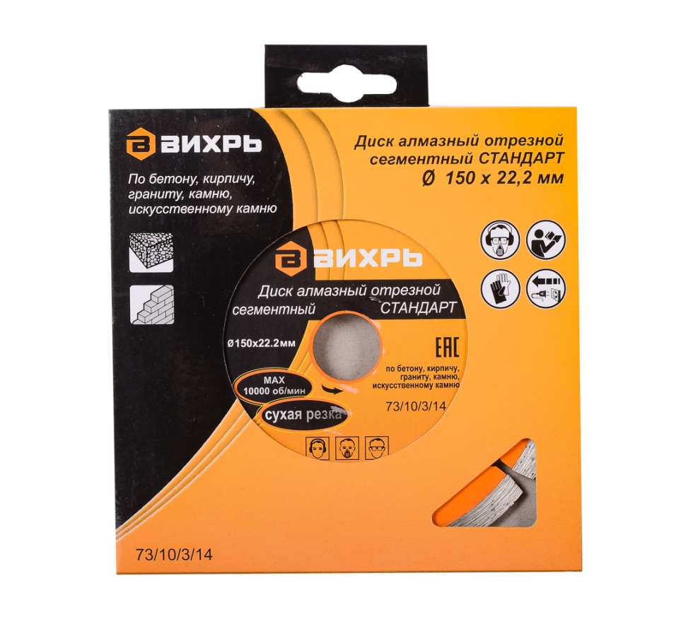 - Диск алмазный отрезной сегментный СТАНДАРТ Вихрь, 150х22,2 мм, сухая резка