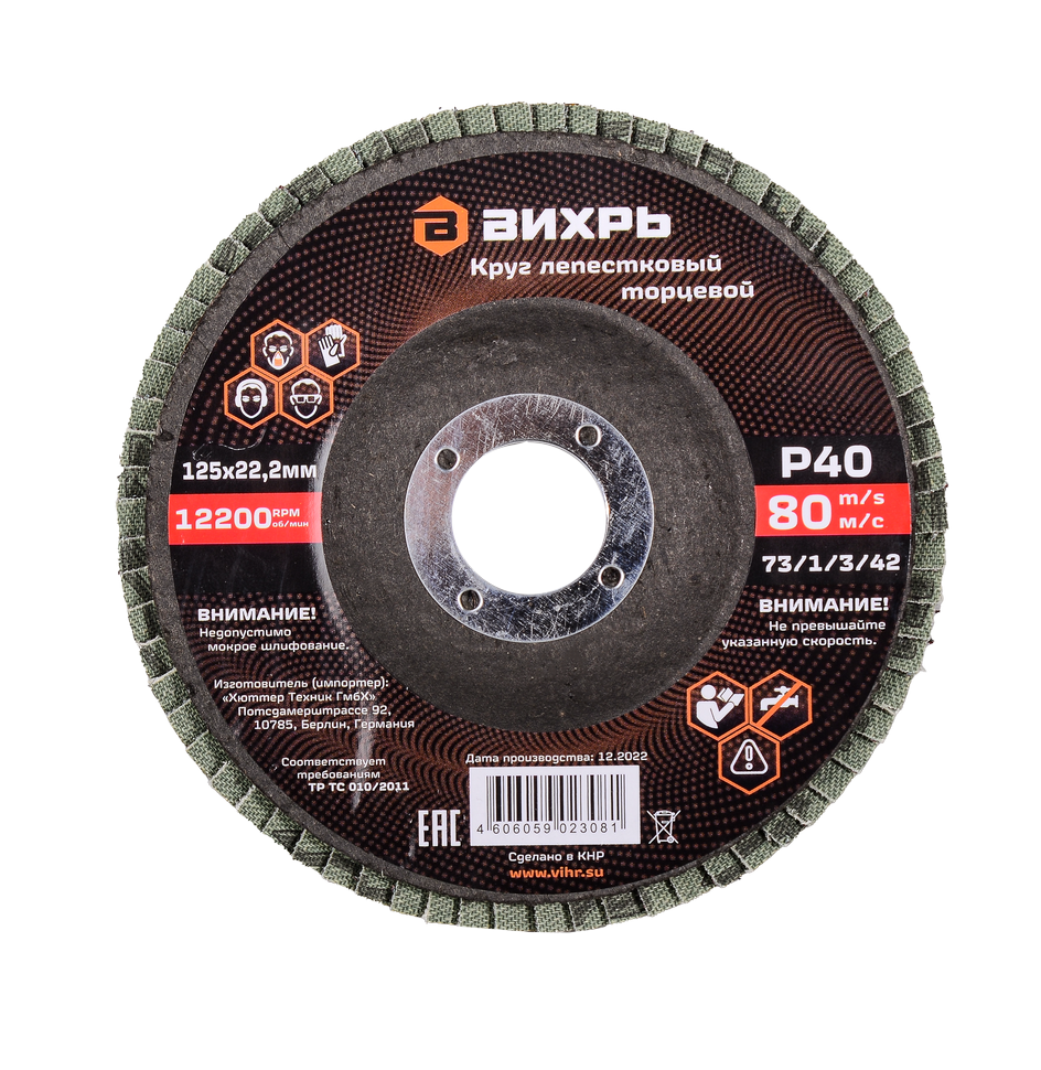 - Круг лепестковый торцевой Вихрь 125х22,2 мм, Р40