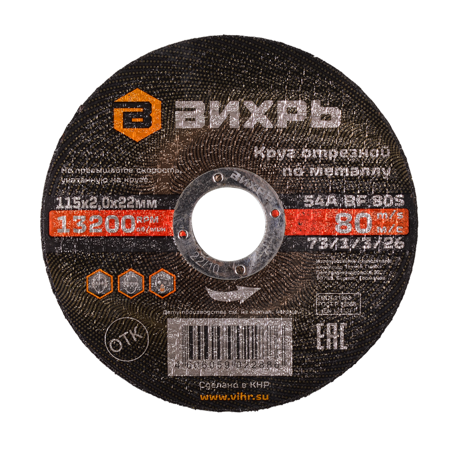 - Круг отрезной по металлу Вихрь 115х2,0х22 мм