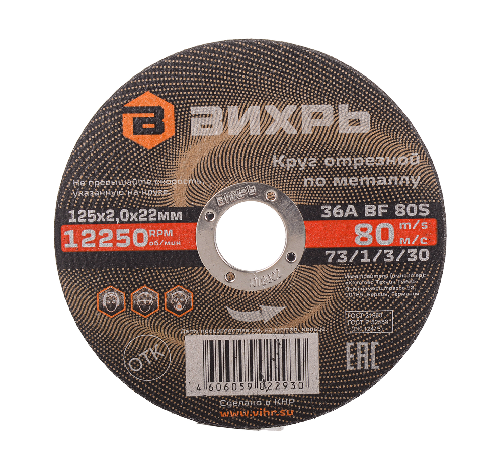 - Круг отрезной по металлу Вихрь 125х2,0х22 мм