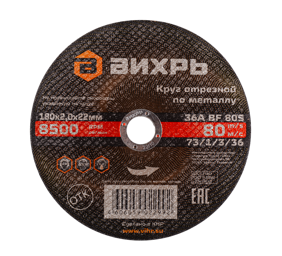 - Круг отрезной по металлу Вихрь 180х2,0х22 мм