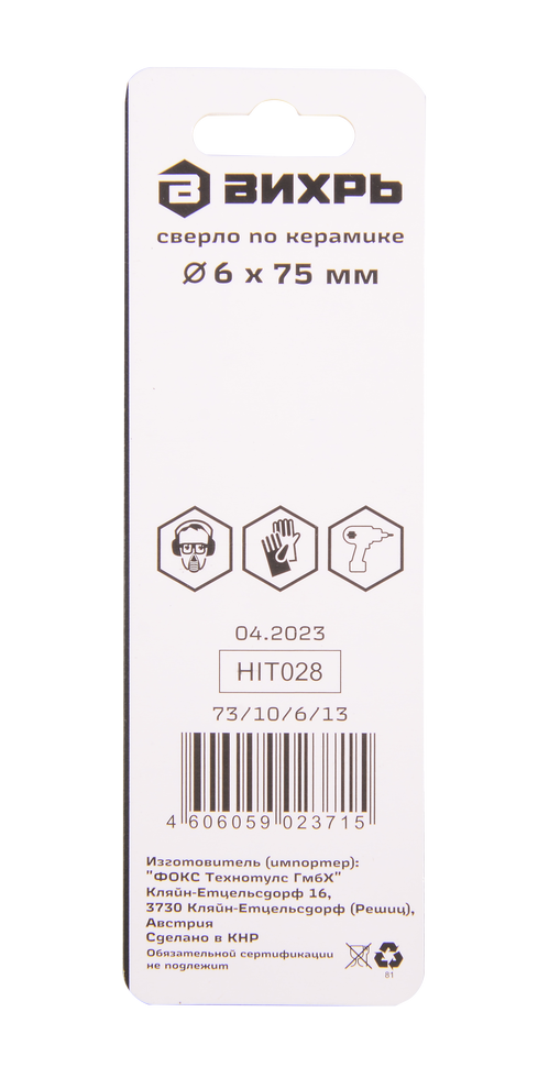 - Сверло по керамике и стеклу ВИХРЬ 6 мм