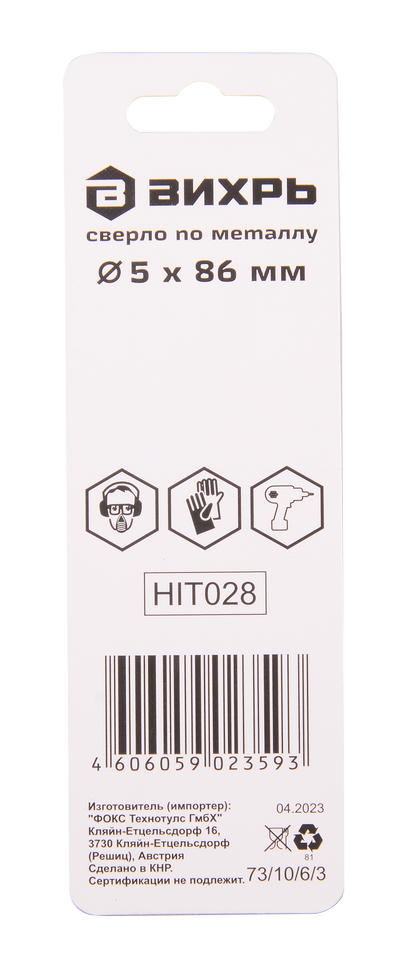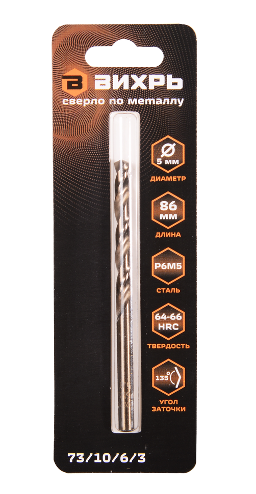 - Сверло по металлу ВИХРЬ 5 мм, P6M5
