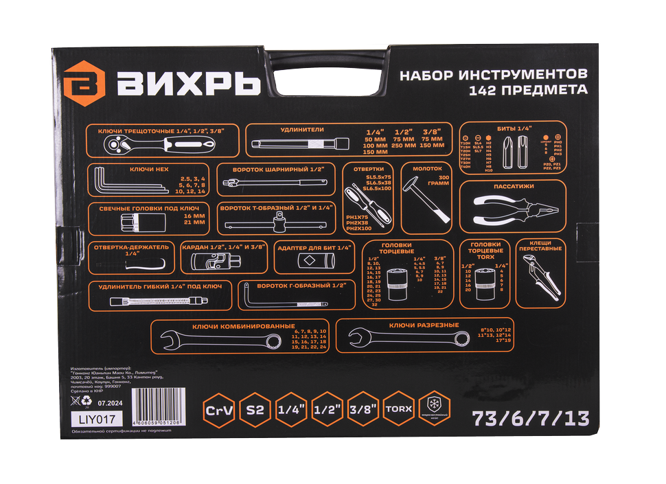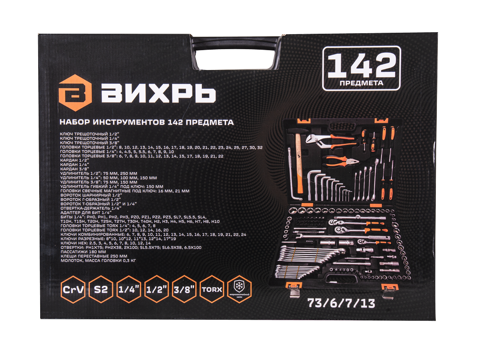 - Набор инструментов, 1/2", 1/4", CrV, в кейсе 142 предм Вихрь