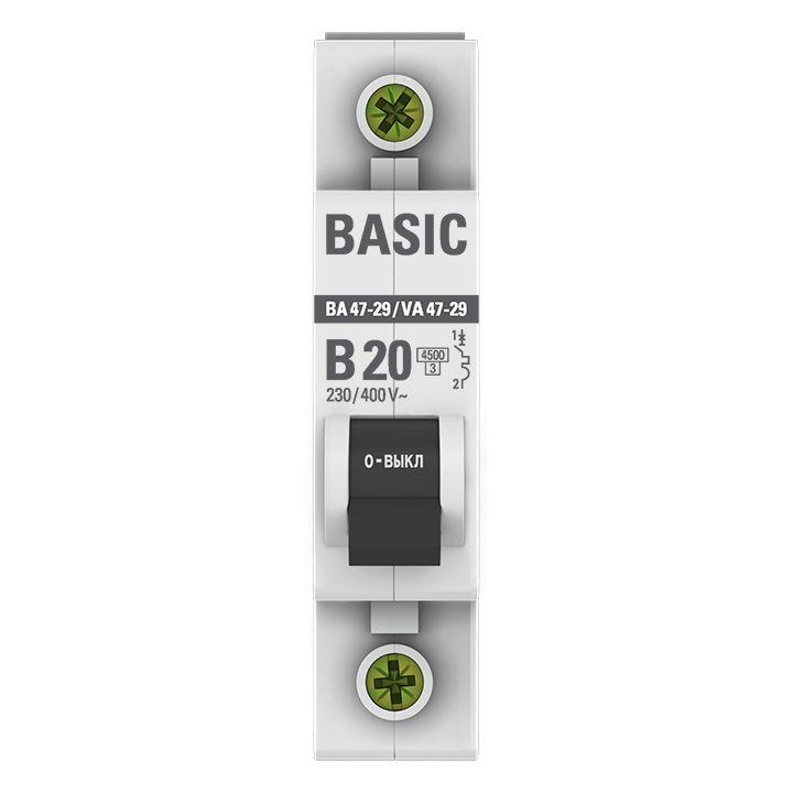 - Автоматический выключатель 1P 20А (B) 4,5кА ВА 47-29 Basic mcb4729-1-20-B