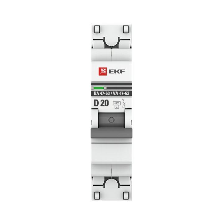 - Автоматический выключатель 1P 20А (D) 4,5kA ВА 47-63 EKF PROxima mcb4763-1-20D-pro