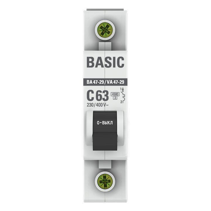- Автоматический выключатель 1P 63А (C) 4,5кА ВА 47-29 Basic mcb4729-1-63C