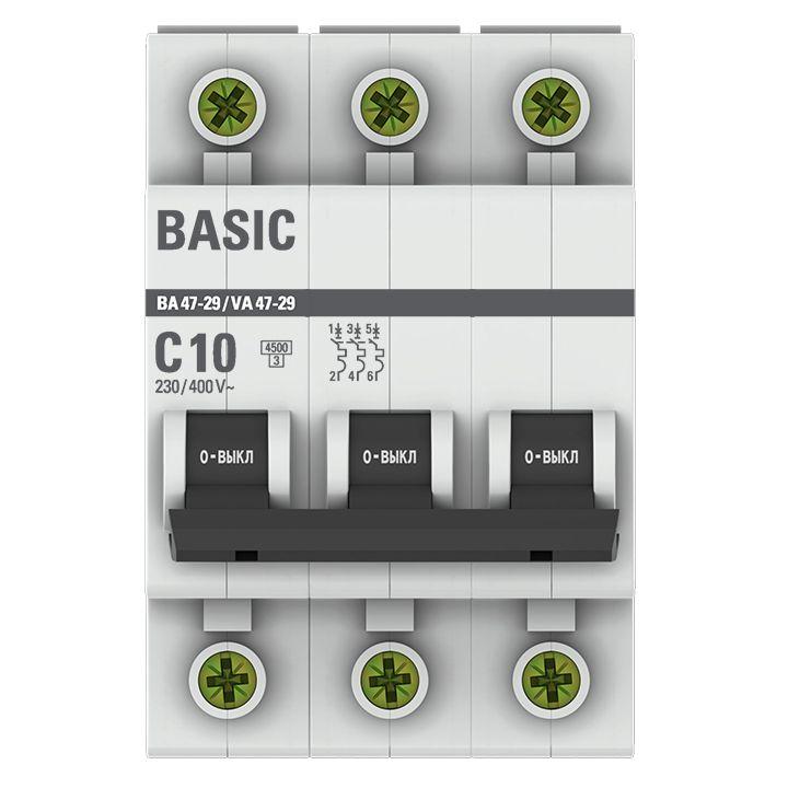 - Автоматический выключатель 3P 10А (C) 4,5кА ВА 47-29 Basic mcb4729-3-10C