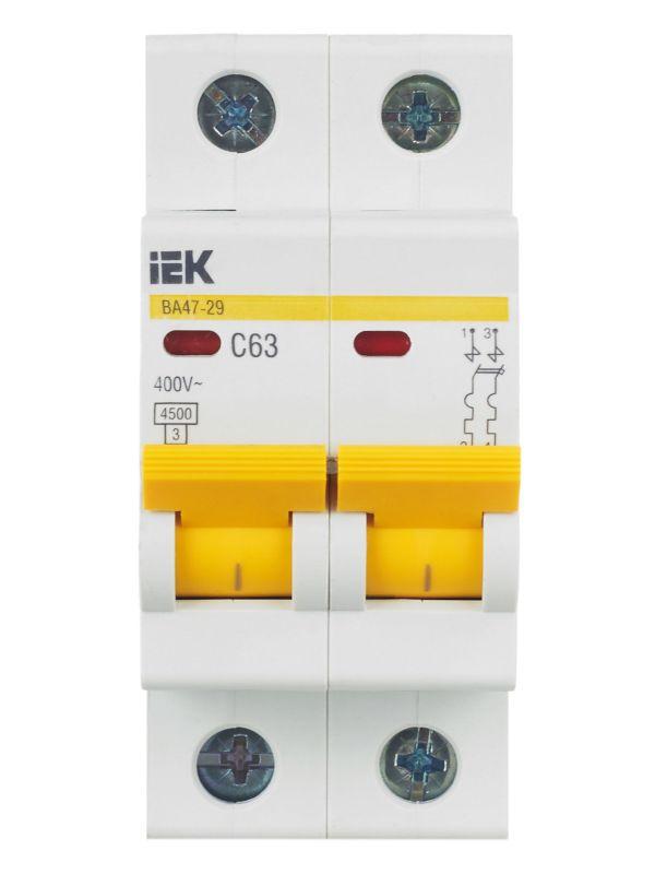 - Выключатель автоматический модульный 2п C 63А 4.5кА ВА47-29 KARAT IEK MVA20-2-063-C