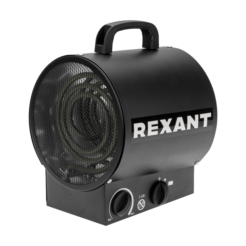 - Пушка тепловая электрическая, круглая, прямоугольная подставка, ТЭН, 3кВт REXANT