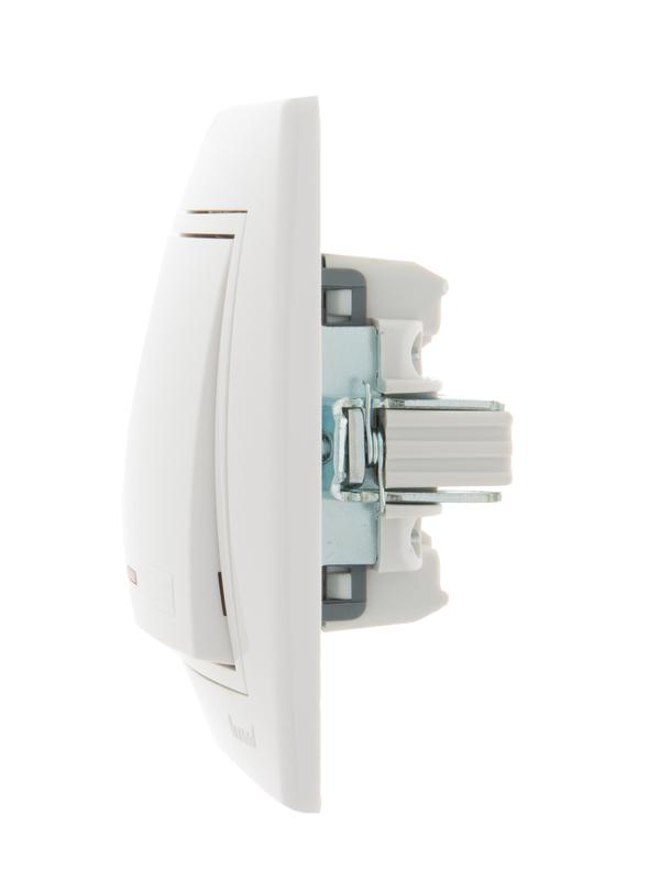- Выключатель 1-кл. СП Mira 10А IP20 с подсветкой с бел. вставкой бел. LEZARD 701-0202-111