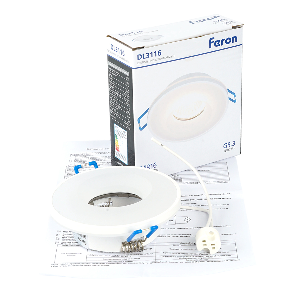 - Светильник встраиваемый Feron DL3116 потолочный G5.3 белый