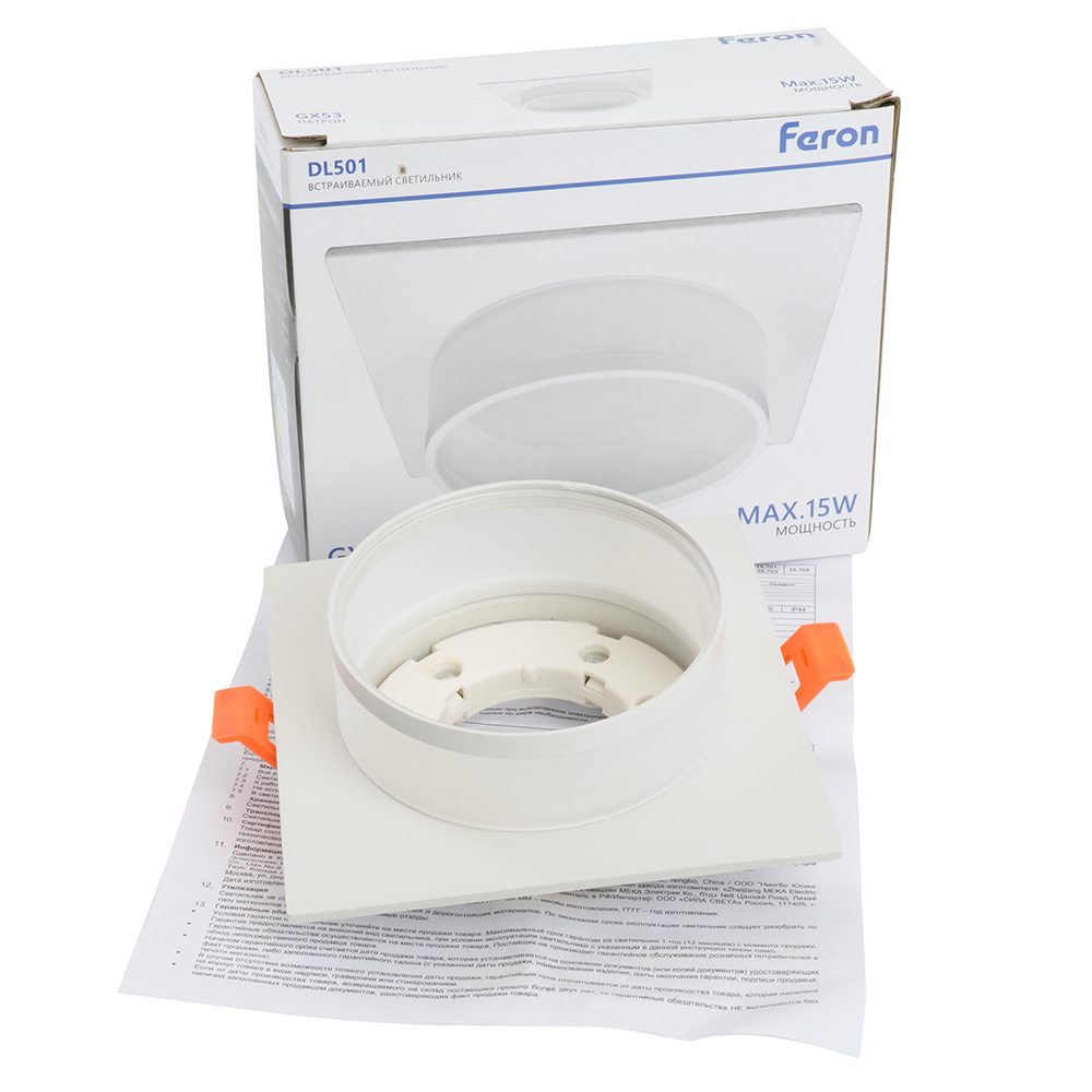 - Светильник встраиваемый Feron DL501 потолочный GX53 белый квадрат