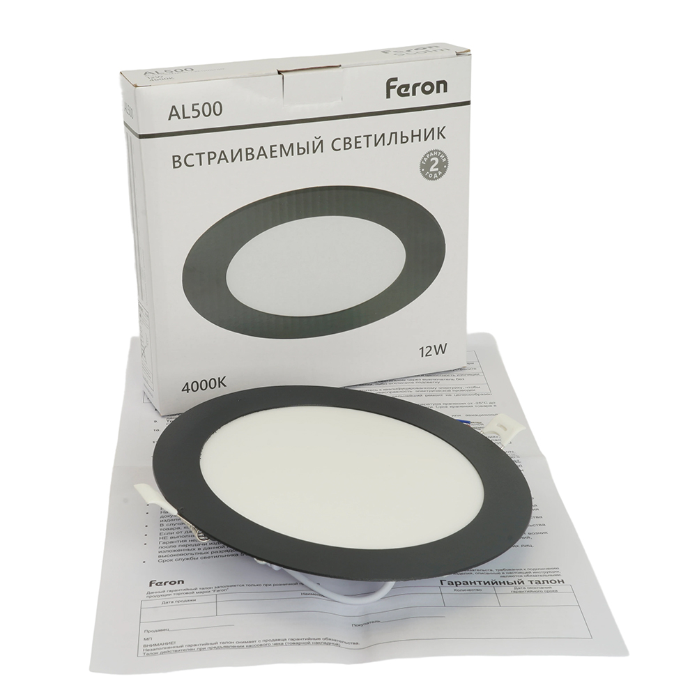 - Светодиодный светильник Feron AL500 встраиваемый 12W 4000K черный