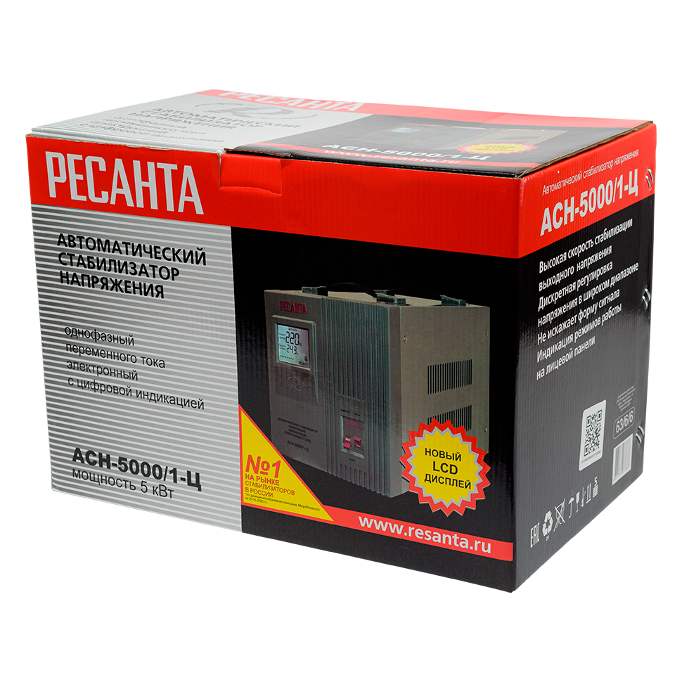 - Стабилизатор напряжения Ресанта АСН-5000/1-Ц